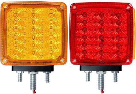 Double Face LED Turn Signal Lights, Square Dual Face Led Trailer Truck Fender Pedestal Stop Turn Tail Brake Lights Post Mount Replacement Red/Amber