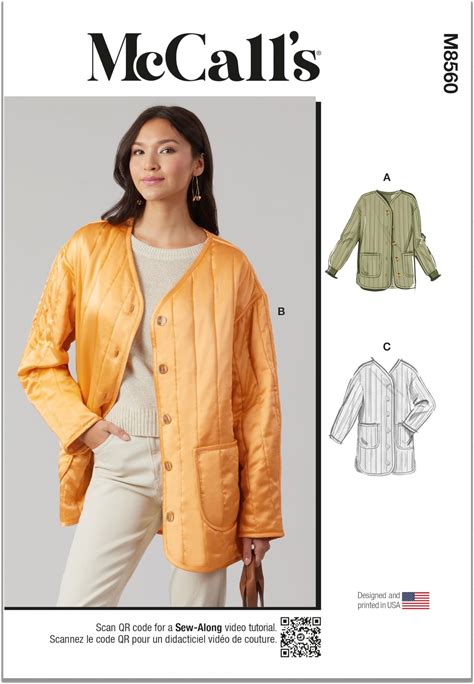 Mccall's M8560H5 Misses' Loose Fitting Quilted Jacket Sewing Pattern Packet, Design Code M8560, Sizes 6-8-10-12-14