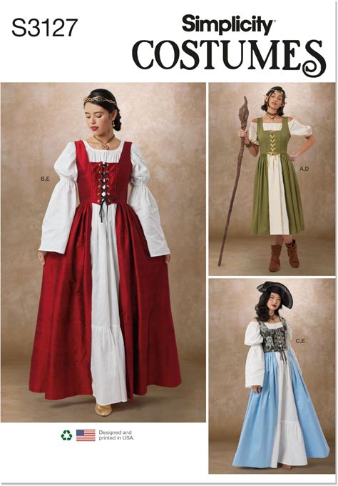 Simplicity SS3127K5 Misses' Overdress And Chemise Costumes Sewing Pattern Packet, Design Code S3127, Sizes 8-10-12-14-16