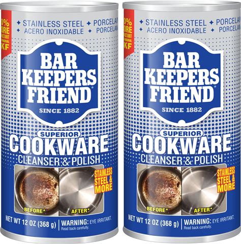 Bar Keepers Friend Cookware Cleanser & Polish (2 X 12 Oz) Stainless Steel Cleaner & Degreaser For Pots, Pans, Bakeware & Grills - Removes Sticky
