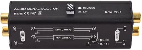 Portable 2 Channels RCA Ground Loop Isolator Professional Hum Eliminator Audio Signal Isolator Black