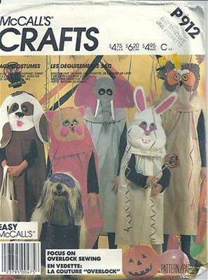 Mccall's Sewing Pattern Children's P912 Costume Cat Elephant Owl