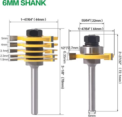 2Pc 6 Piece Slot Cutter 3 Wing Router Bit Set Woodworking Chisel Cutter Tool- 8"& 1/4" Shank 6mm Shank Tenon Cutter For Woodwor