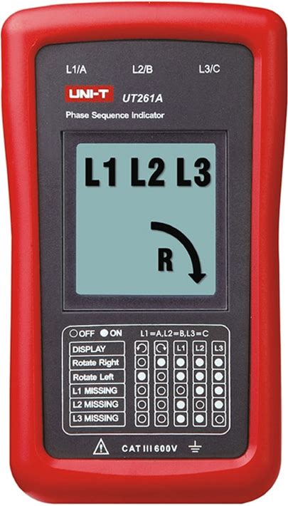 UNI-T Phase Sequence Motor Rotation Indicator Missing Phase Indication 3-Phase Power AC Voltage 40700V UT261A UT261B
