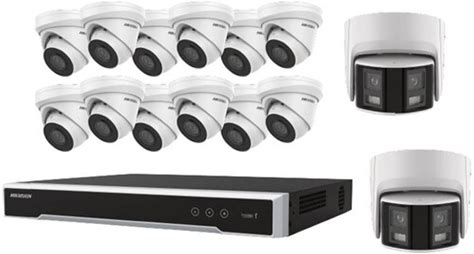Hikvision EKI-K164T414 16-Channel 4K NVR With 4TB HDD, 12 4MP Turret Cameras & Two 4MP Dual-Lens Turret Camera Panoramic Kit