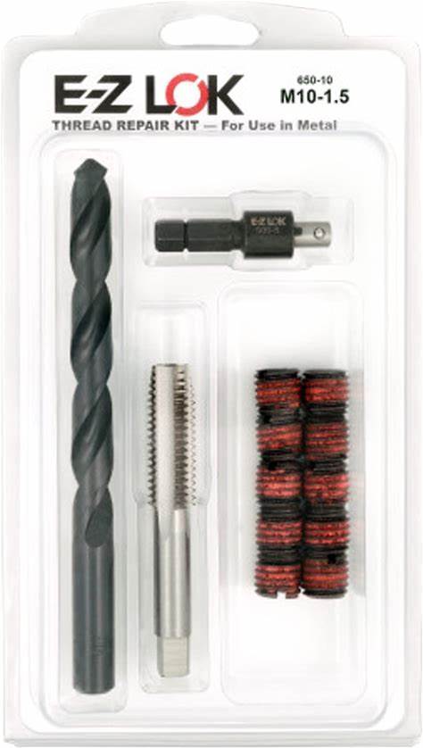 E-Z LOK EZ-650-10 Threaded Inserts For Metal M10-1.5 Installation Kit, Steel, Black Oxide