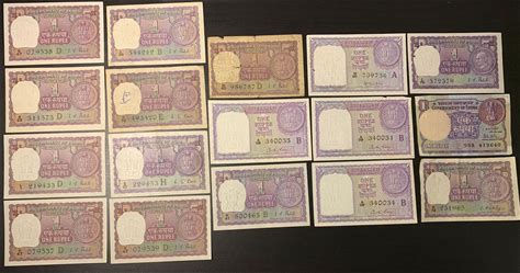 1957-1981 1 Rupee Government Of India Some UNC 17 Banknotes