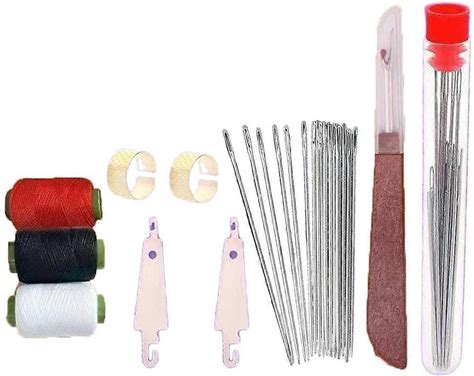 Thread Needle Kit 25 Pcs C Curved Needle With 5 Rolls BLACK Hair Weaving Thread Cotton Sewing Thread