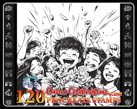 120 Procreate Comic Celebration Stamps: Scene Brush Set (Digital Download)